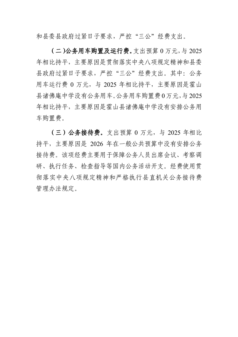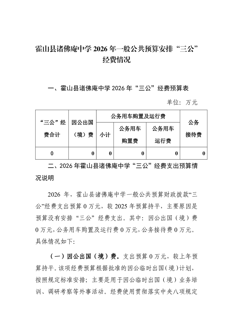 | 名 称: | 霍山县诸佛庵中学2026年一般公共预算安排“三公”经费情况 |