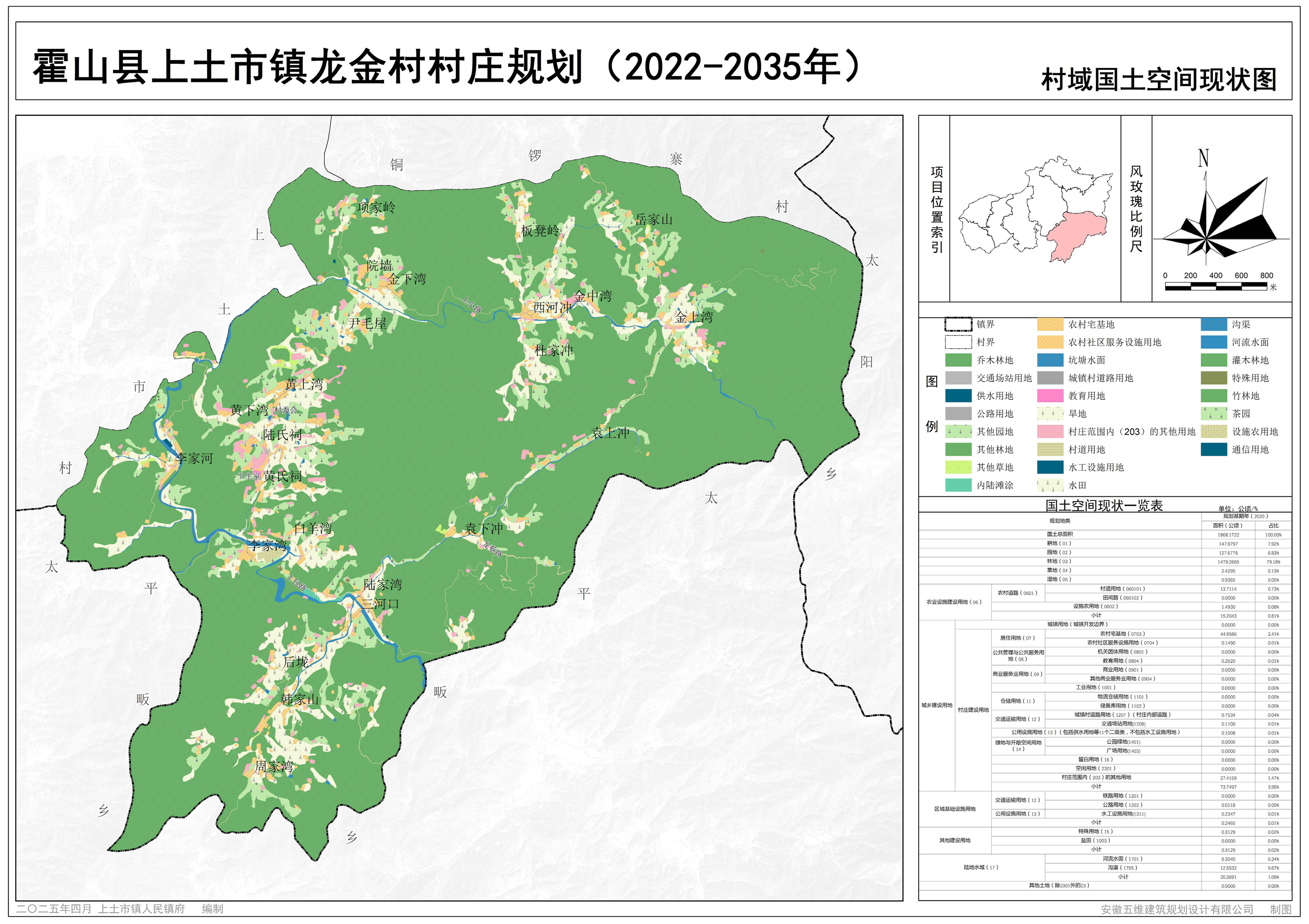 龙金村村域全部国土空间,国土总面积1868.17公顷。