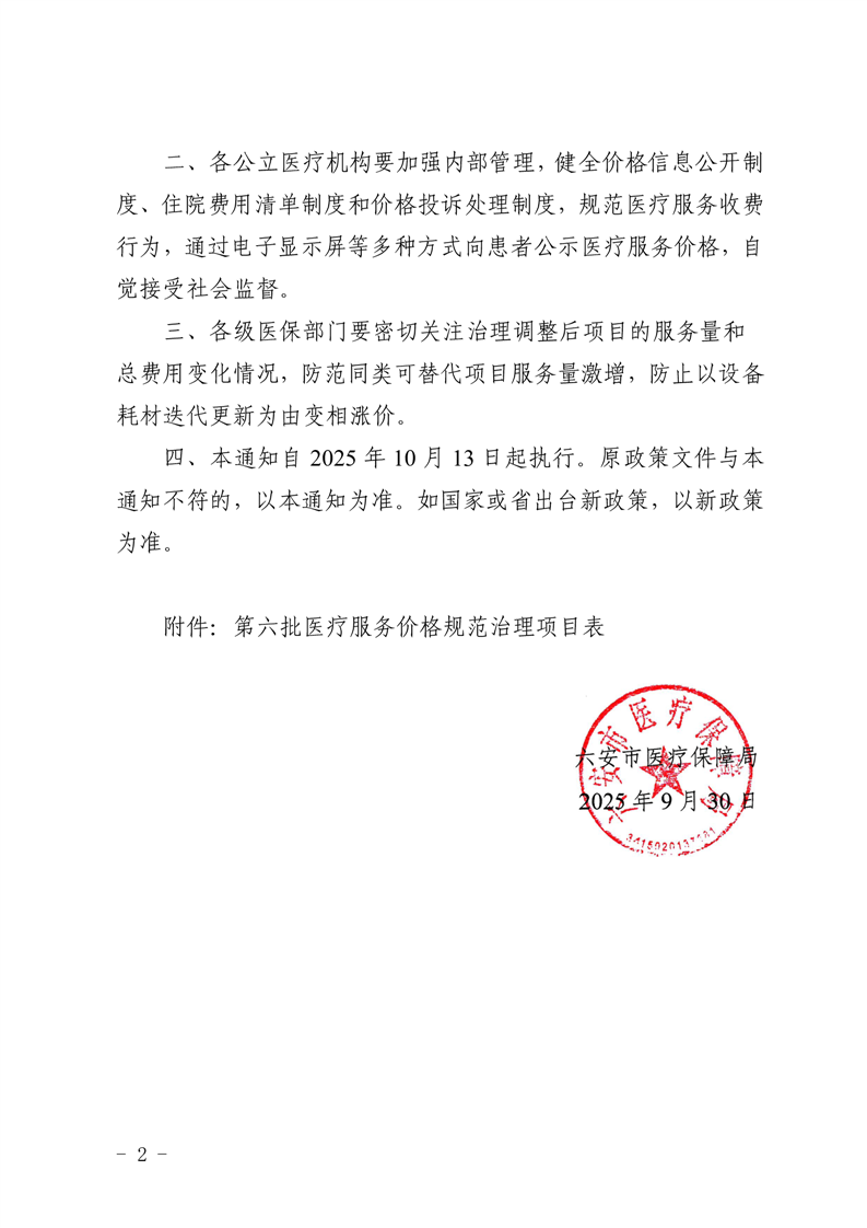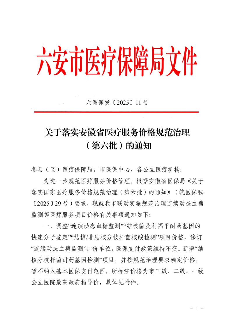 关于落实安徽省医疗服务价格规范治理(第六批)的通知