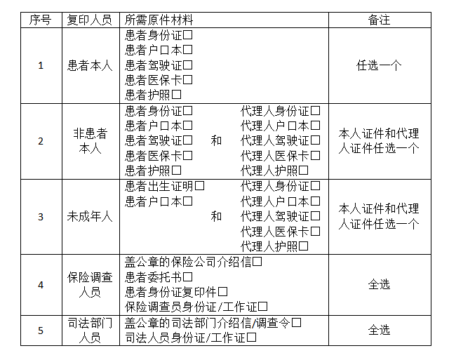 2.病历复印免费。