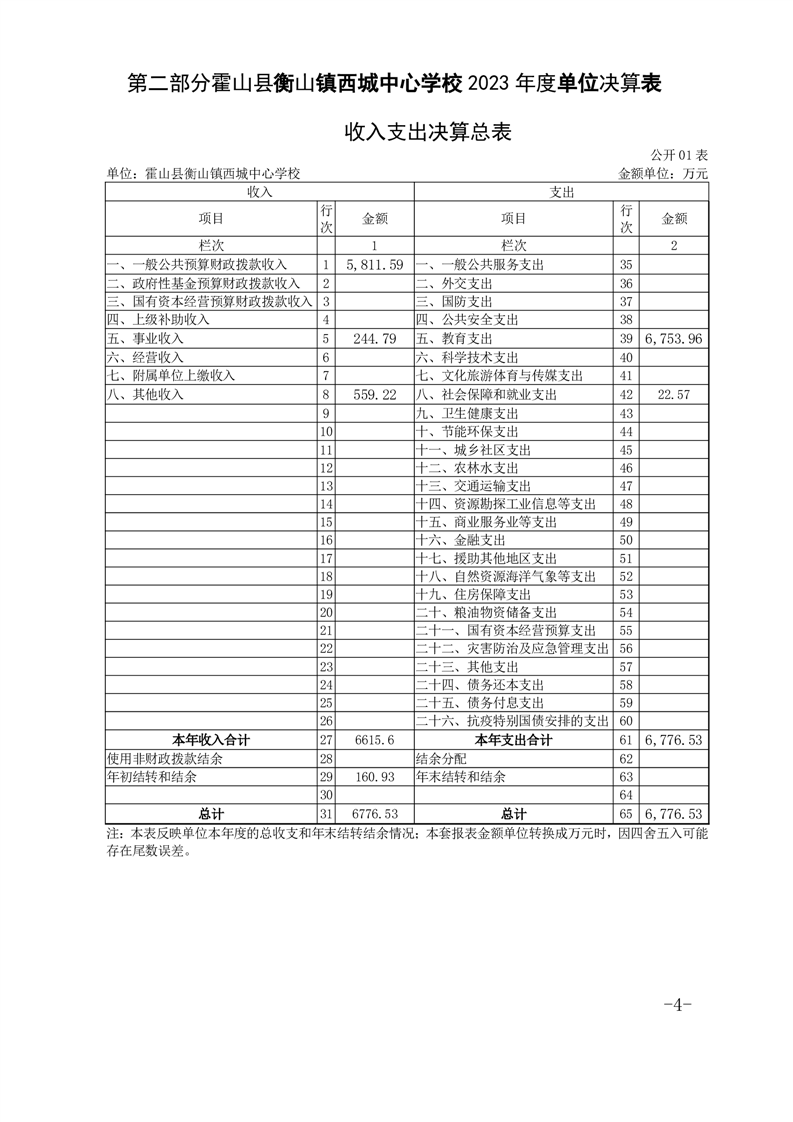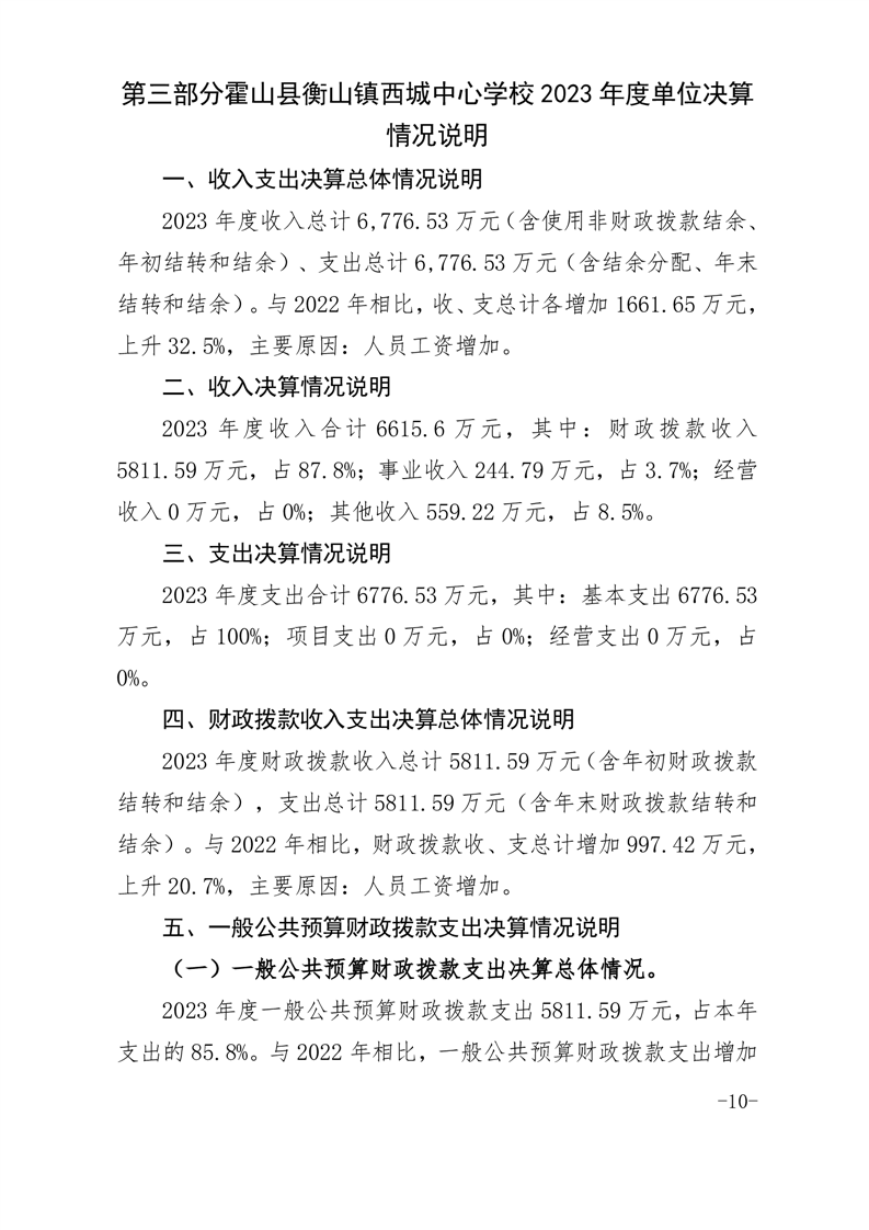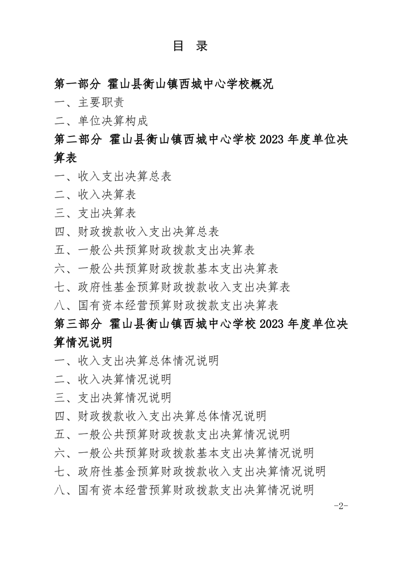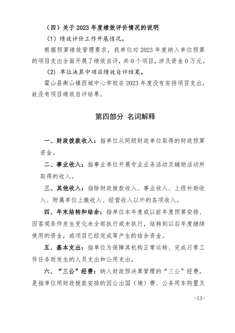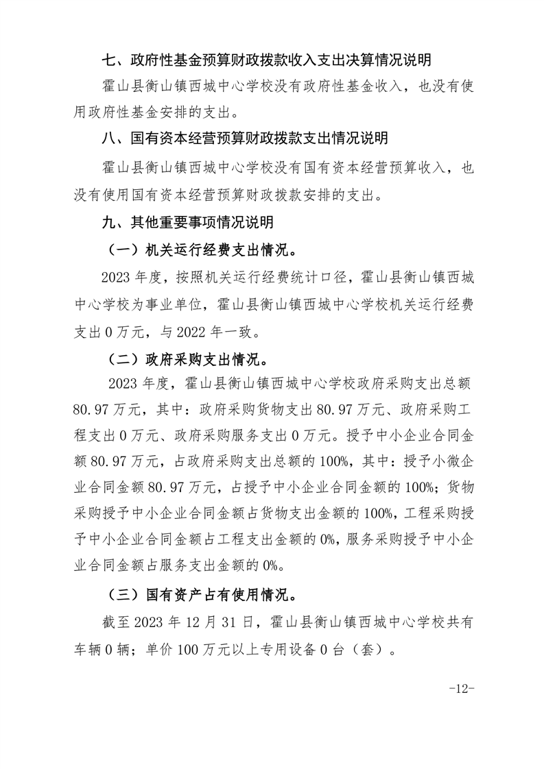霍山县衡山镇西城中心学校 2023 年度单位决算
