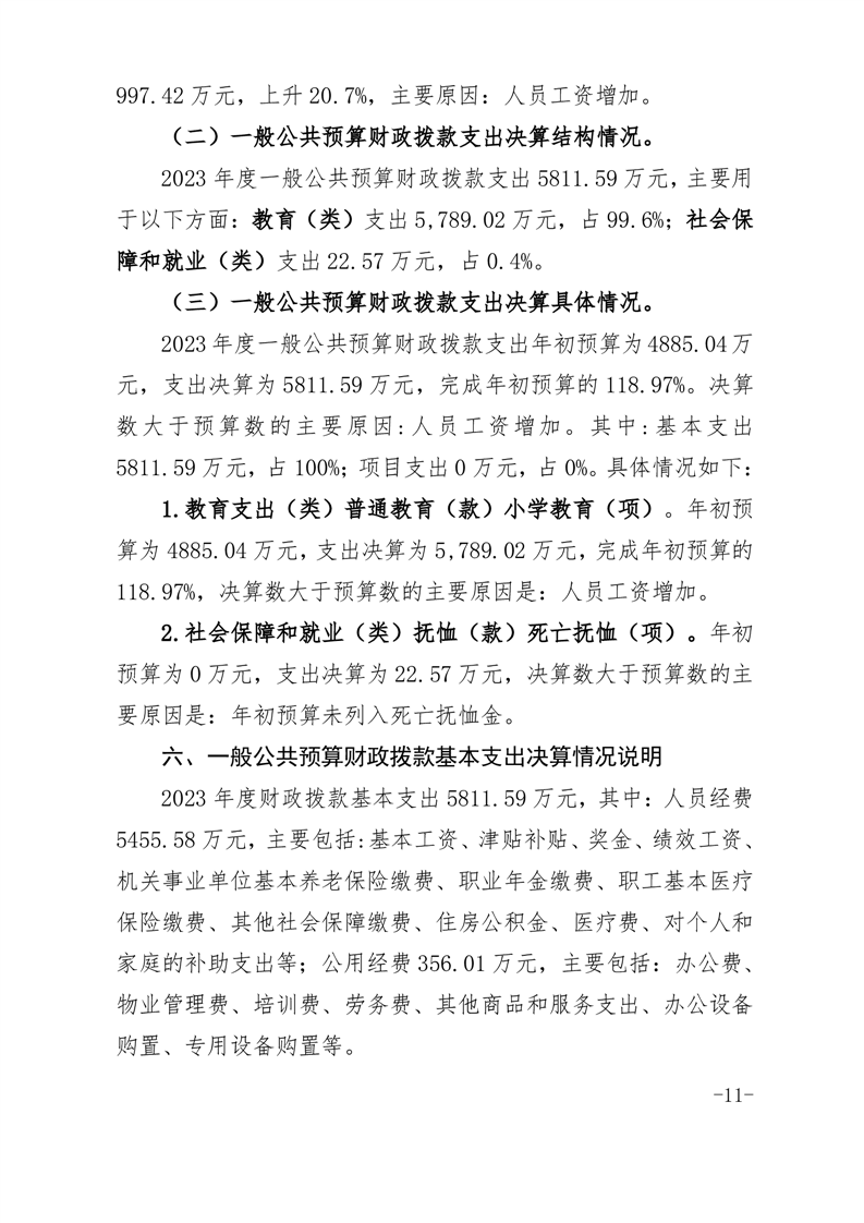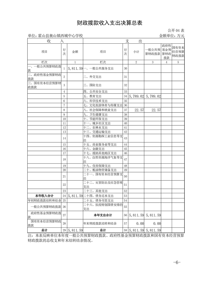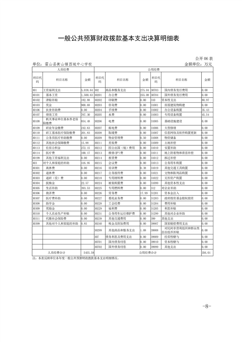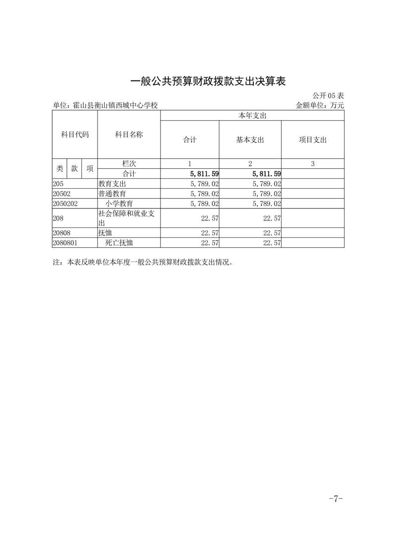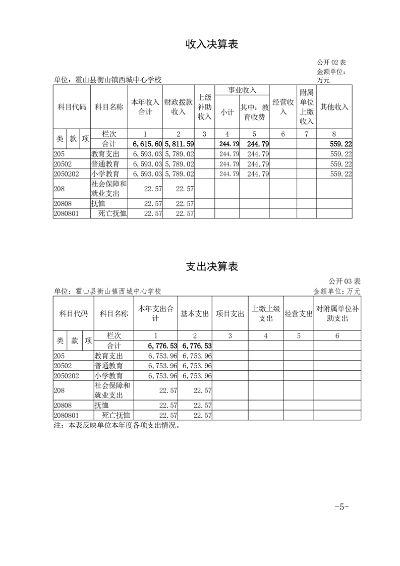 霍山县衡山镇西城中心学校 2023 年度单位决算