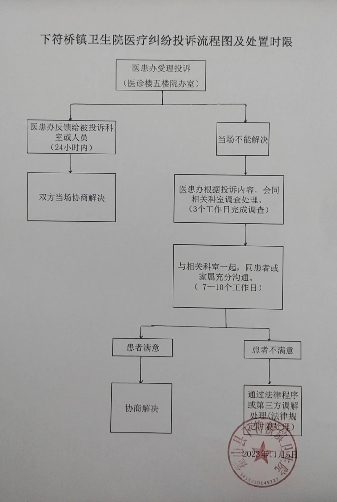 霍山县下符桥镇卫生院医疗纠纷投诉流程图及处置时限