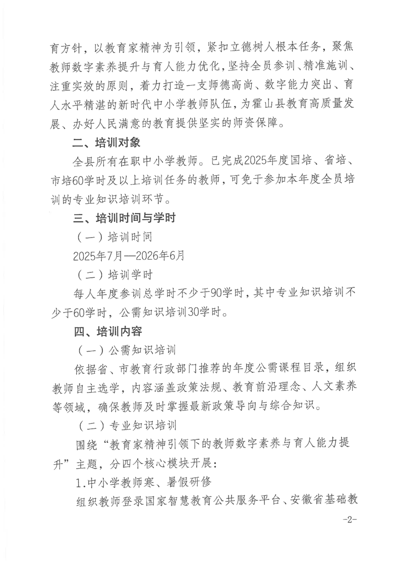 霍山县大化坪镇中心学校2025—2026学年度中小学教师全员培训及实施方案