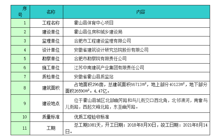 霍山县体育中心工程概况