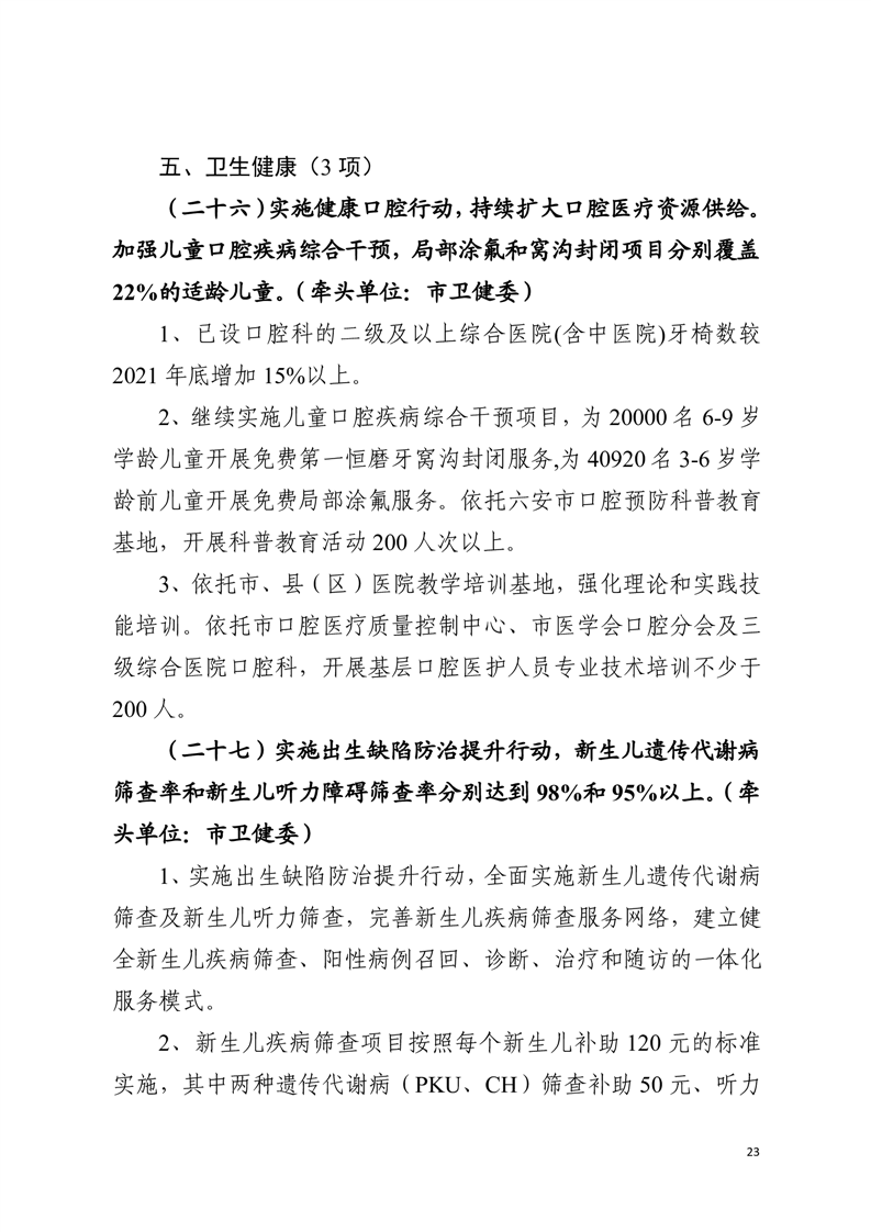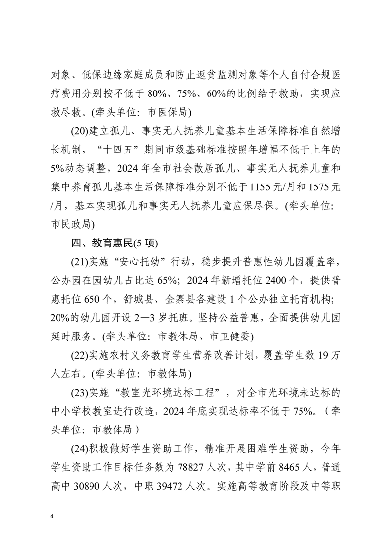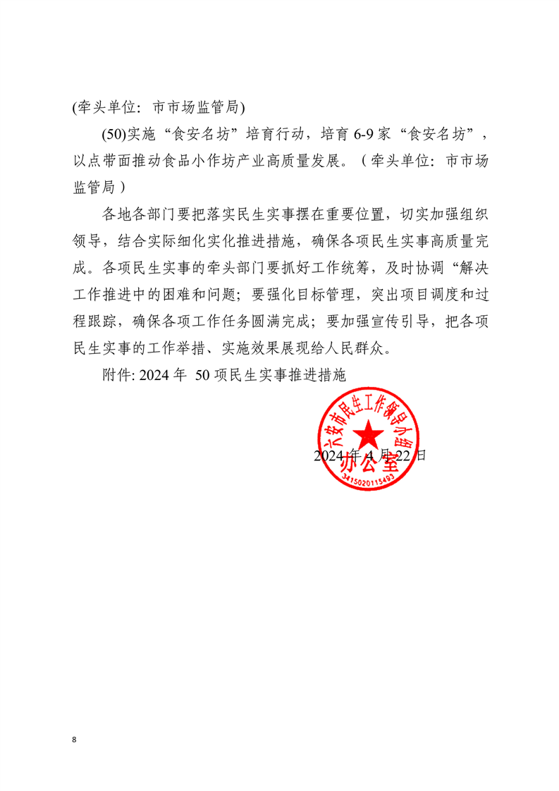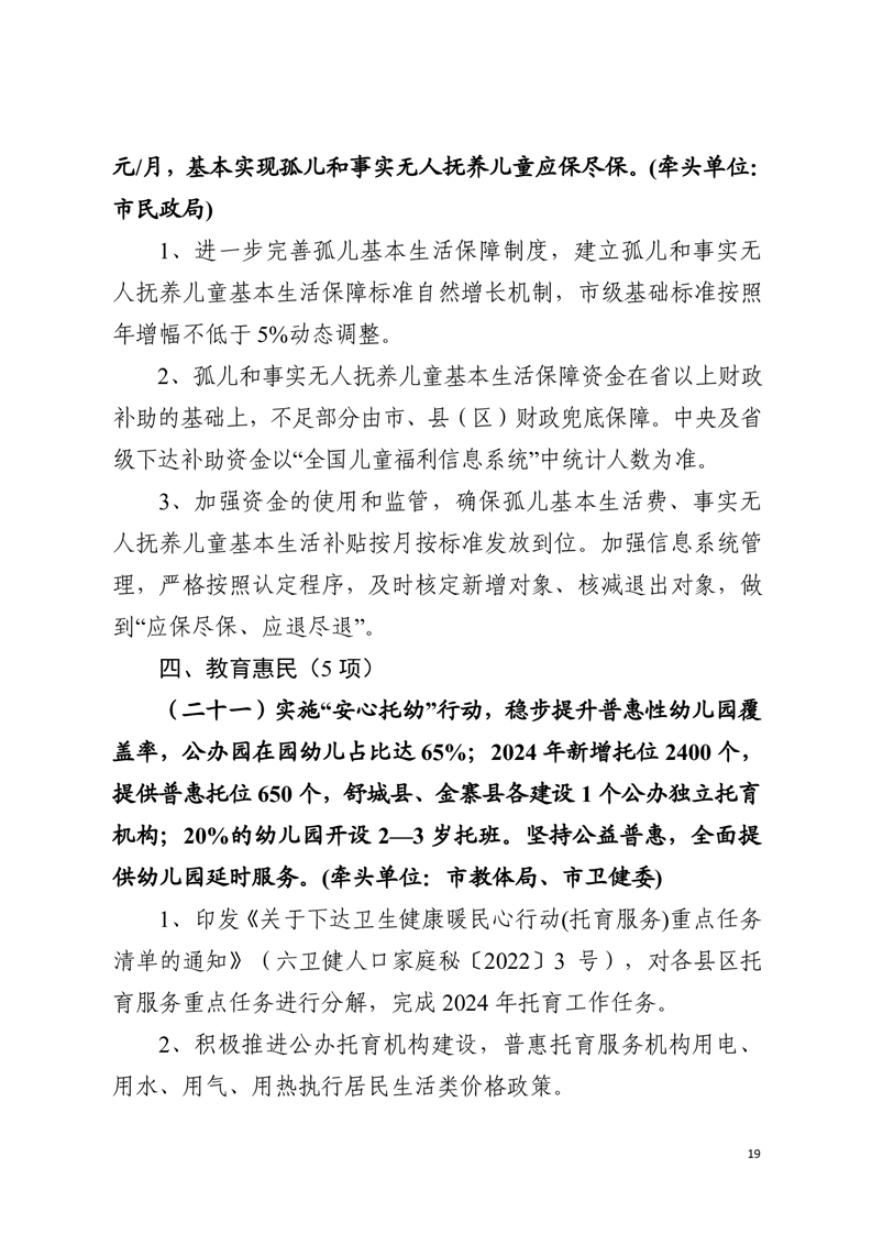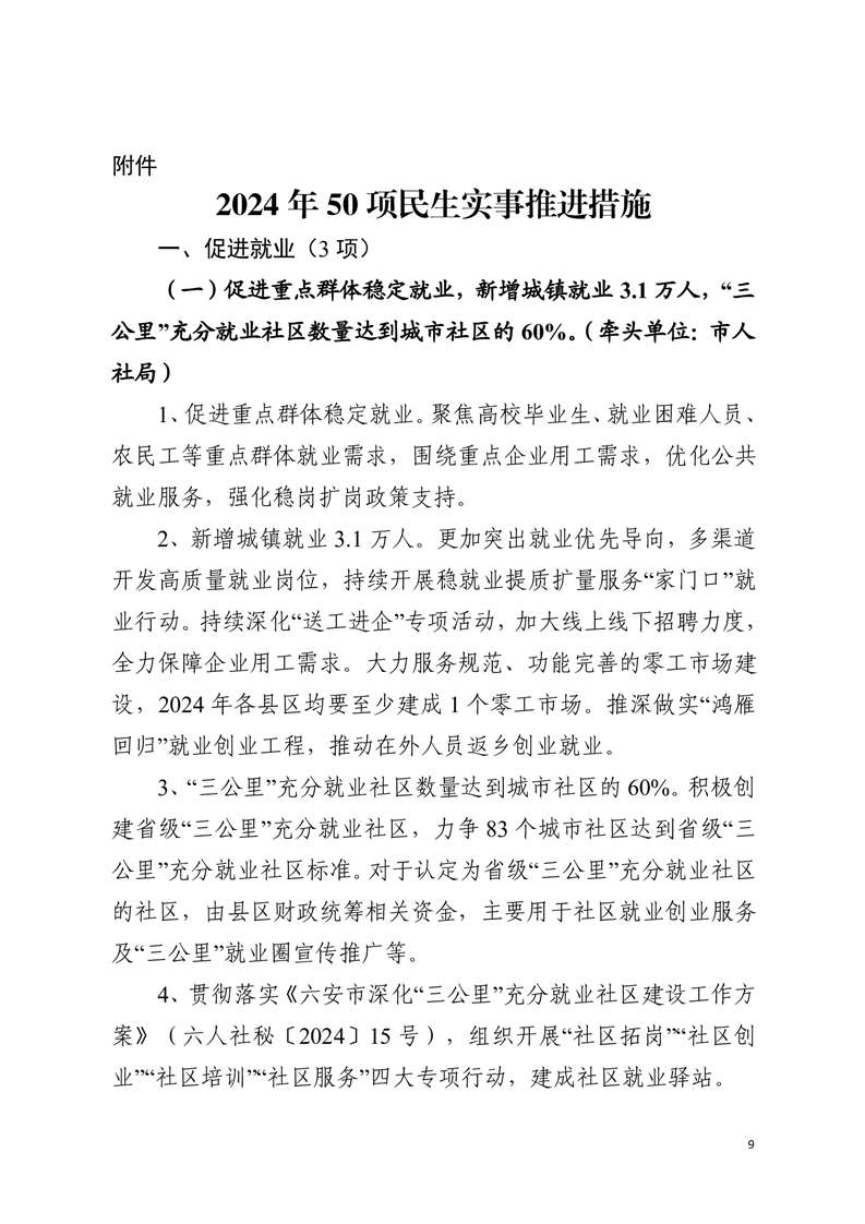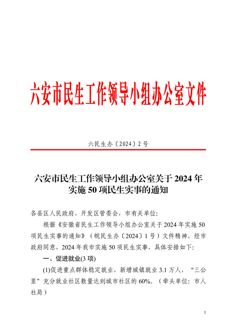 六安市民生工作领导小组办公室关于2024年实施50项民生实事的通知