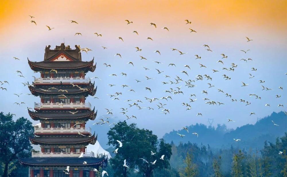 近日,在“睡美人”山峰下的迎驾阁附近,摄影师记录下了极为壮观的一幕,数以万计的白鹭聚集于此。