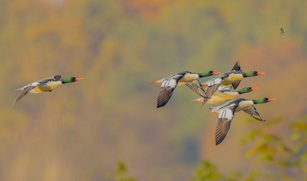 候鸟翩跹、碧波荡漾,近日,摄影爱好者在东淠河再次观测到前来越冬的中华秋沙鸭群体。今年我县观测到的该种群数量已超过30只,远超往年,创下自2014年底首次在此地被记录以来的历史新高。