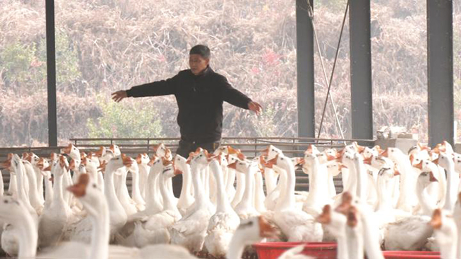 此前,下符桥镇大白鹅养殖多为农户散养,规模小、标准化程度低,优质资源未能转化为发展优势。2024年,该镇利用衔接资金150万元,新建7栋3200平方米标准化养殖大棚,配套育雏、加工、水电道路等设施,形成年养殖1万只的规模基地。通过公开招租引入本地养殖大户运营,2025年1月首批6000只鹅苗落户,目前已有5000余只成功出栏。