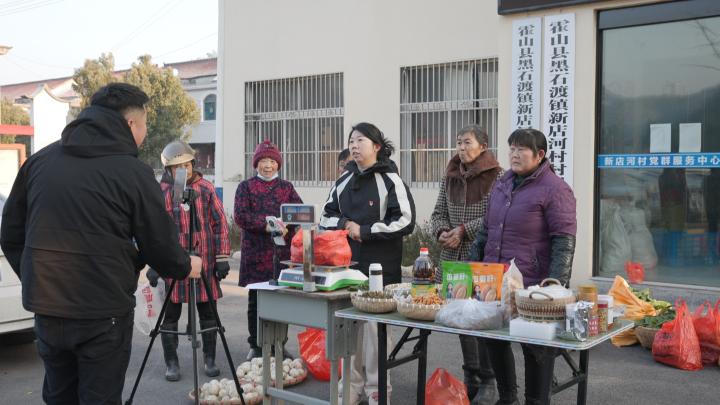 冬日清晨寒意袭人,但黑石渡镇新店河村的村部门口却人头攒动,一派热火朝天的景象。早上7点半,村支部书记李静准时直播,她对着镜头卖力推销起周边村民自家产出的黄心菜、萝卜、冬笋、蜂蜜等本地农产品。