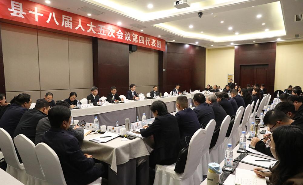 今天下午,县委书记罗文与第四代表团的县人大代表们共同审议政府工作报告。县领导贺新建、龚耀宗参加。