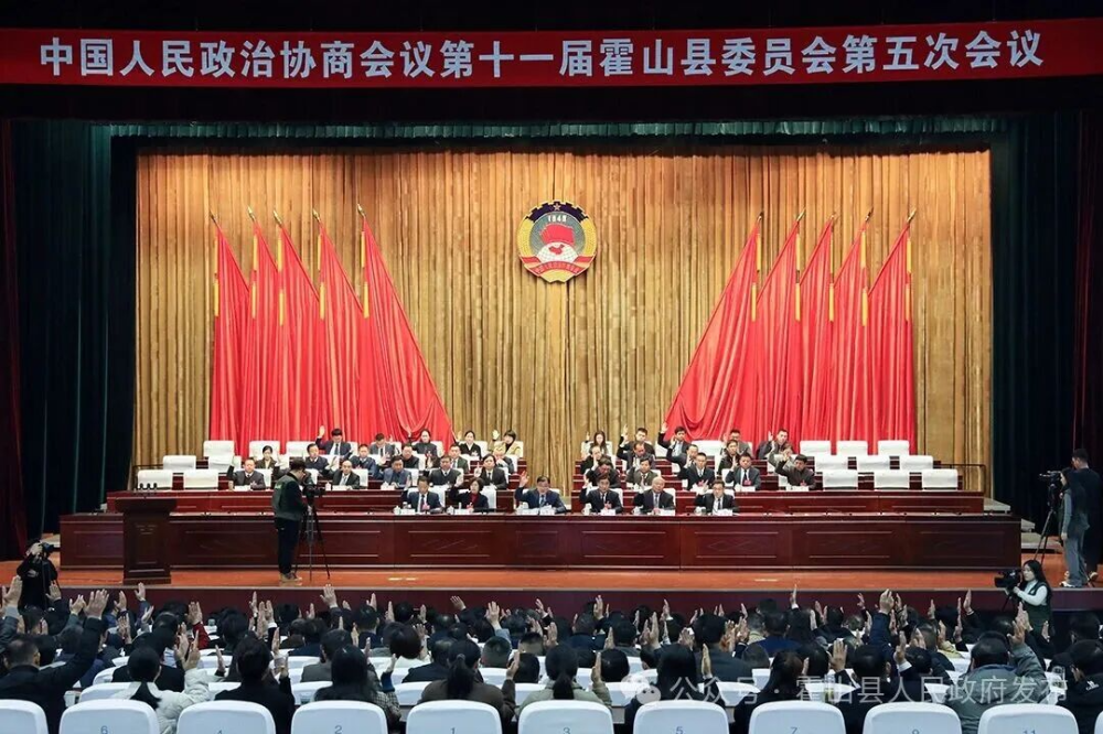 1月15日上午,政协霍山县十一届五次会议举行第二次全体委员大会。图为大会进行举手表决。