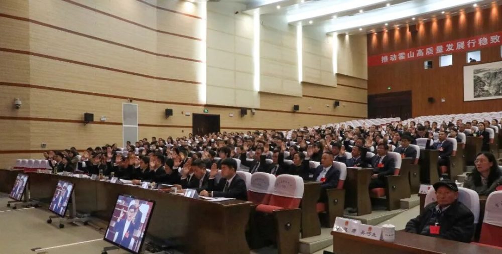 大会以举手表决方式通过总监票人、监票人名单;以无记名投票方式,依法选举刘瀚宇为霍山县人民政府县长,仇多弟为霍山县第十八届人民代表大会常务委员会副主任,石爱武、李铁、吴义云、汪文、郑凤琴为霍山县第十八届人民代表大会常务委员会委员,赵光华为霍山县人民法院院长。新当选人员与代表见面,并进行宪法宣誓。