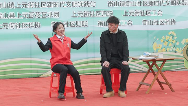 在衡山镇,一场精彩的“春季村晚”正在热闹上演。当地文艺爱好者自编自导自演的小品《男婚女嫁》,聚焦现实生活,讲述了大龄青年因高额彩礼迟迟无法步入婚姻殿堂的故事,将婚事简办、文明婚俗理念,以居民群众喜闻乐见的形式生动演绎出来,让文明新风浸润人心。